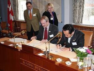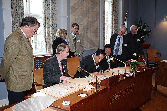 1997年4月24日、デンパークの竣工式に併せ友好都市協定を結んで以来、文化・産業の交流を行ってきましたが、環境などデンマークから学ぶことも多く、デンマークに対する市民の関心の高さから、今後は人的交流も含めた幅広い交流を行うことを目的に、「姉妹都市」としてあらためて協定を結びました。