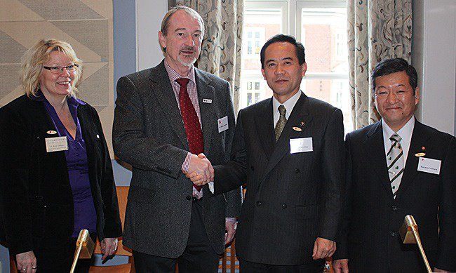 安城市からは、神谷市長、木村市議会議長、コリング市からはアナセン市長、オルセン行政局長が代表として協定書に署名をしました。