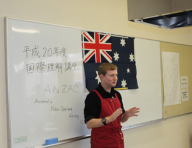 第4回目の国際理解講座、テーマは「オーストラリア」。講師のアダム・シモンズさんからオーストラリアで親しまれている「ANZAC BISCUITS(アンザック・ビスケット)」の作り方と名前の由来について学びました。