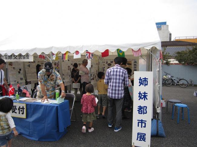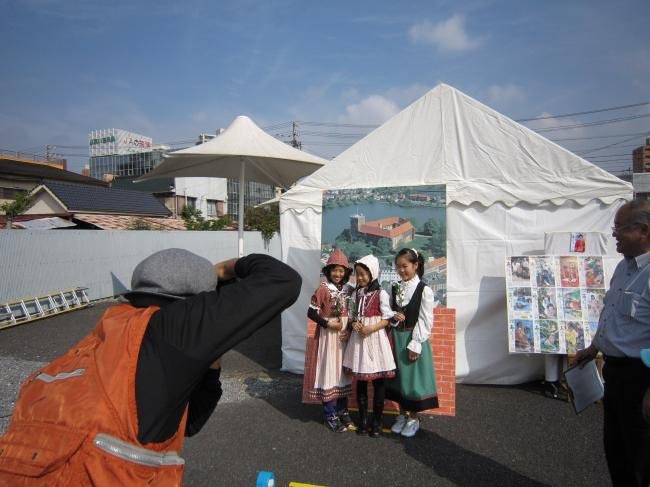 恒例の姉妹都市展、本年度は姉妹都市への交換学生・引率教諭の滞在報告と、米国ハンティントンビーチ市への市民派遣団の帰国報告を展示。また、特別企画として、デンマークの民族衣装の試着と、試着された方にコリング市の風景を背景に写真撮影をして「広報あんじょう」の表紙レイアウトにしてプレゼントしました。昨年を大幅に上回る来場者で、民族衣装の試着は待つ人の長い列ができてしまいましたが、出来上がった写真に満足された笑顔をたくさん見ることができました。
