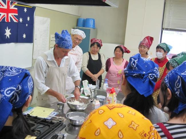 オーストラリア姉妹都市ホブソンズベイ市交換職員のウェイン・ウェブスターさんによる“オーストラリアのスコーン作り講座”を開催しました。