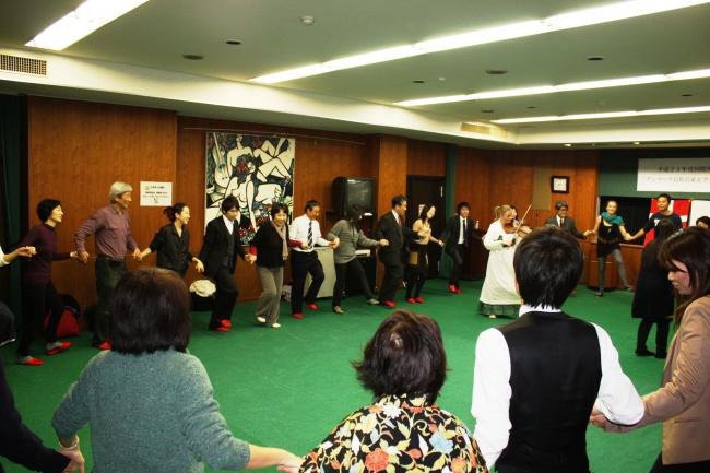 北欧の美しい民族音楽にうっとり聞きほれた後、ヴァイオリンとピアノの生演奏でダンス!初めてのデンマーク・フォークダンスでしたが、「皆さんの覚え方が早くてびっくり。デンマーク人より良いですね。」とスヴェスターからお褒めの言葉がでるほどの上達ぶりでした。