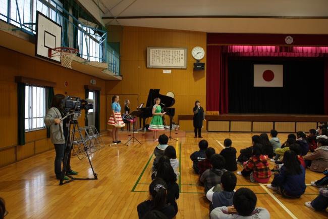 11月29日は中学生以上を対象に青少年の家で、30日は市内の西部小学校6年生を対象に、デンマーク民族音楽の演奏、フォークダンスの講習会、質問コーナーなどで交流をしました。