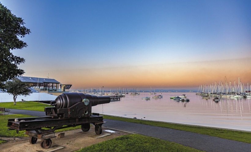 「ザ・ストランド」の大砲とポート・フィリップ湾(ウィリアムズタウン)